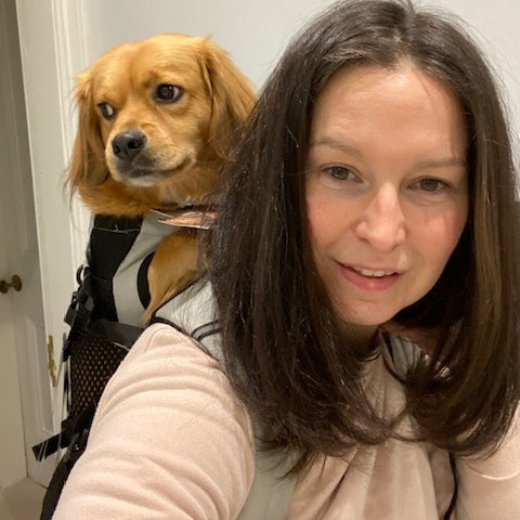 All set for adventures galore, Cleo is sitting pretty in a size large K9 sport sack, happily snuggled up to her best pal Claire. Follow her travels @cleoandchums