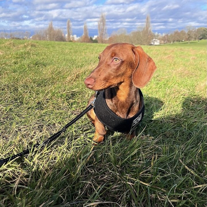 Look at the gorgeous Hayden looking all smart in his new Black Magic Harness! He's wearing a size small whilst admiring the view...
