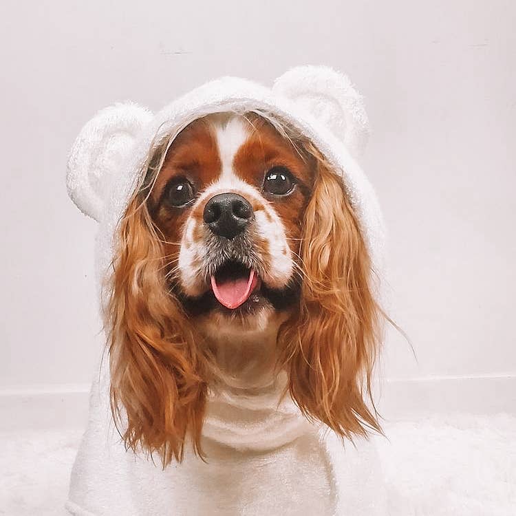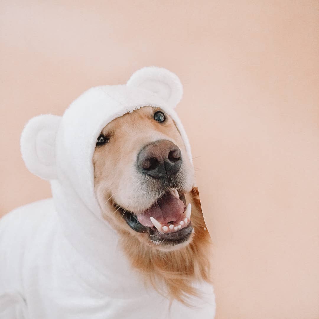 Perfect for pampered pooches, this vanilla coloured dog drying robe by Barkshe will dry your dog and keep them warm after a bath, a swim, or walkies in the rain!