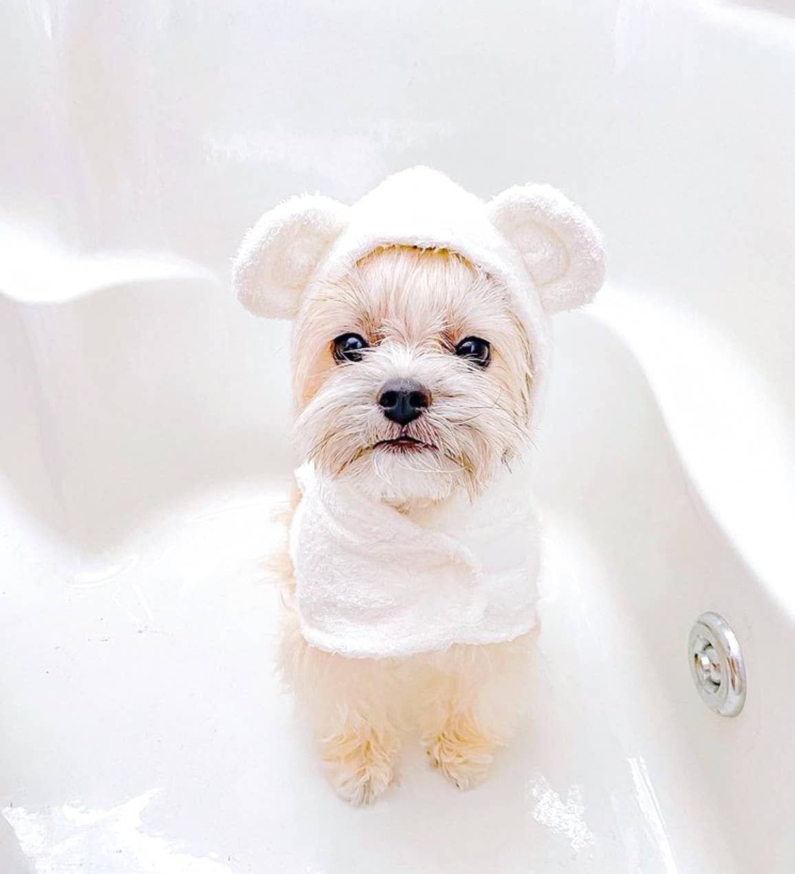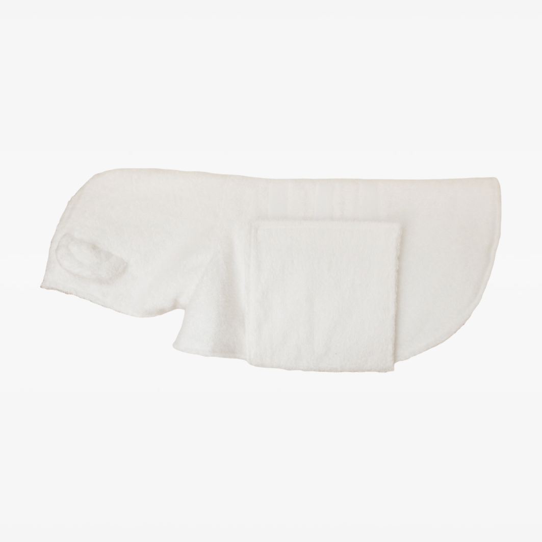 Made from two layers of bamboo towelling, the elegant dog drying bathrobe provides great absorbency with a super soft feel.